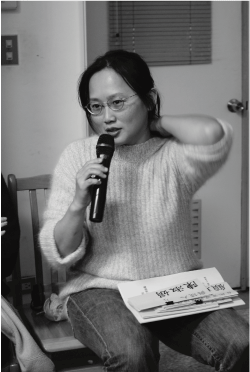 黃薛秋玲(圖中低頭者)報告自己回鄉之路,重新理解家人經驗的過程及選擇當代課老師,更貼近部落的孩子。